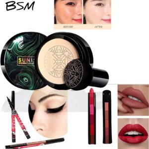 3 in 1 Makeup Deal Sunisa Foundation Base 20g Waterproof Mushroom Head Air Cushion BB Cream Nude Liquid Foundations +yanqina 36H liner + 5 in 1 lipstick Pen