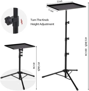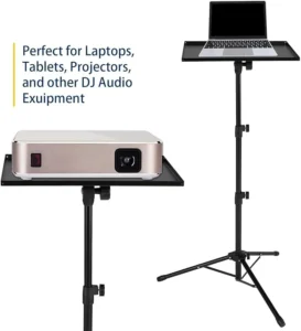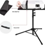 Don’t worry about the projector falling.   non-slip mat and straps to fix the product and supports laptops, DJs, recorders, projectors, music notes, books, sound media equipment, etc.
